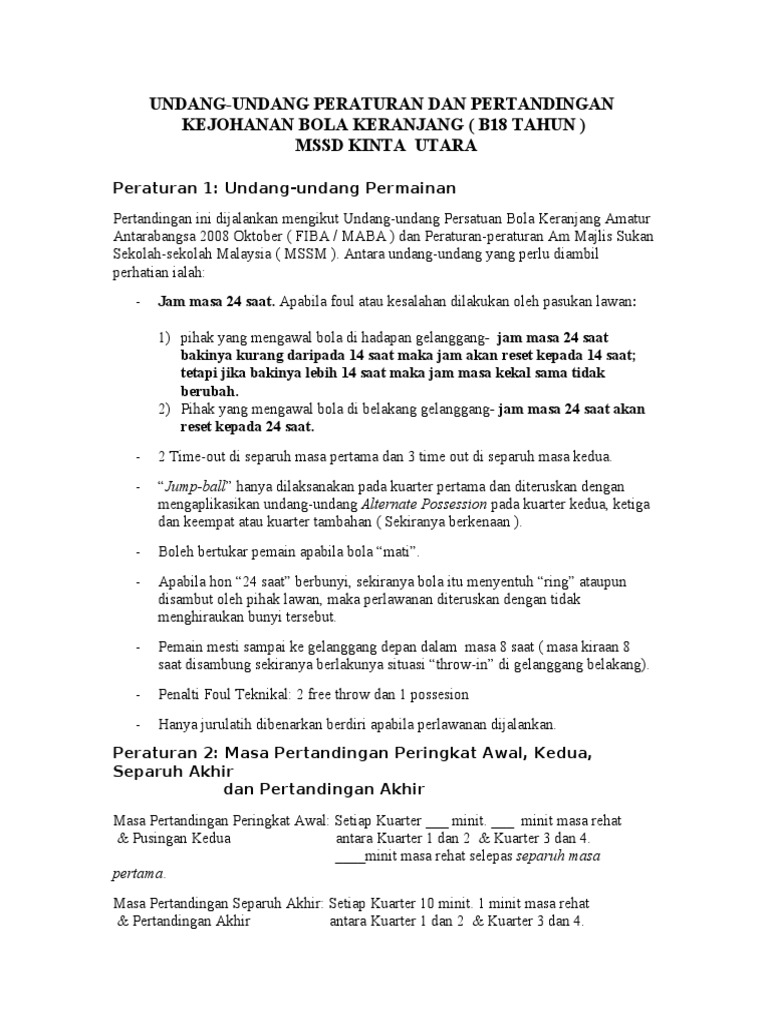 Undang Undang Dan Peraturan Bola Keranjang Pdf